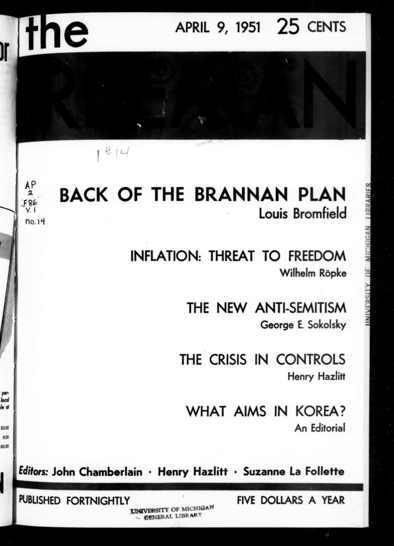 This issue of the Freeman explores the Brannan plan, how inflation threatens freedom, anti-semitism, and more.
