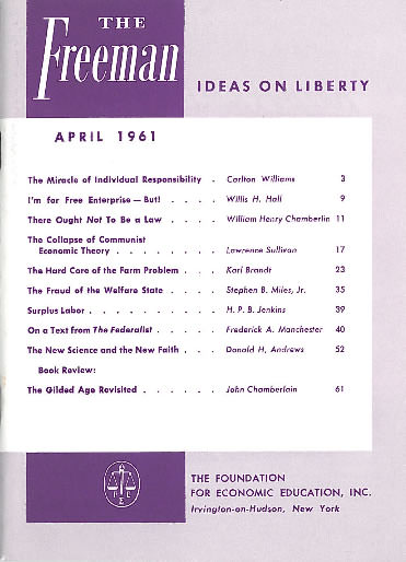This issue of the Freeman explores the miracle of individual responsibility, the collapse of communist economic theory, the fraud of the welfare state, and more.