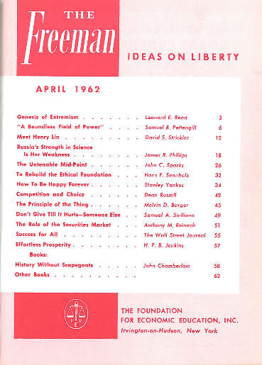 This issue of the Freeman explores the genesis of extremism, the foundation of ethics, competition and choice, and more.