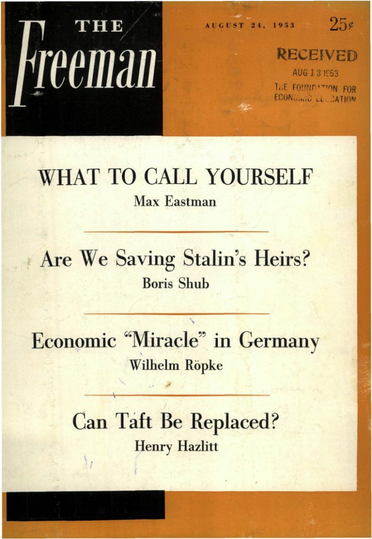 This issue of the Freeman explores Robert A. Taft’s sudden death, political labels, Germany’s economic miracle, and more.