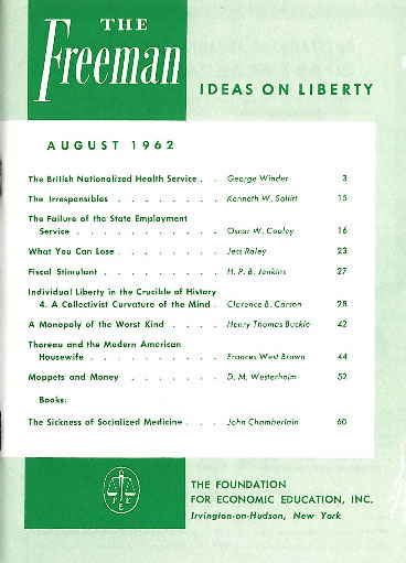 This issue of the Freeman explores nationalized health in Britain, the failure of state employment, Thoreau, and more.