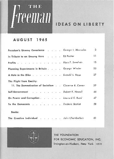 This issue of the Freeman explores the uneasy conscience of freedom, profits, the domestication of socialism, and more.