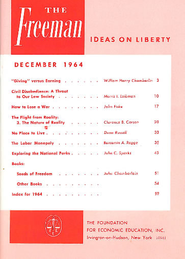 This issue of the Freeman explores civil disobedience, how to lose a war, the labor monopoloy, and more.