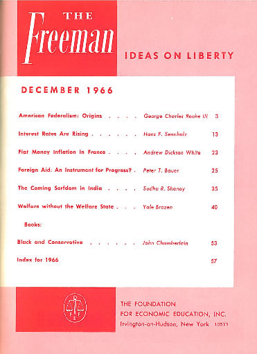 This issue of the Freeman explores American federalism, rising interest rates, welfare without the welfare state, and more.