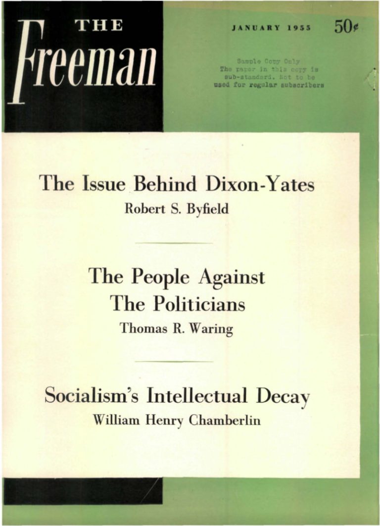 This issue of the Freeman explores socialist intellectual decay, South Carolina’s rejection of entrenched politicians, the Protestant basis for individualism, and more.