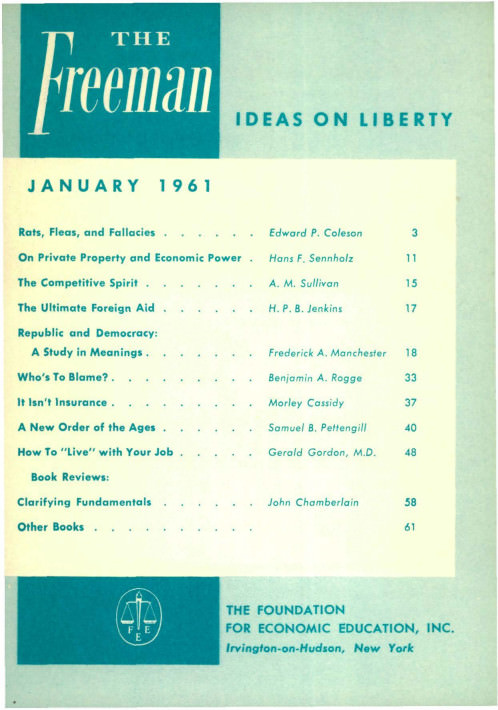 This issue of the Freeman explores private property and economic power, the competitive spirit, how to live with your job, and more.