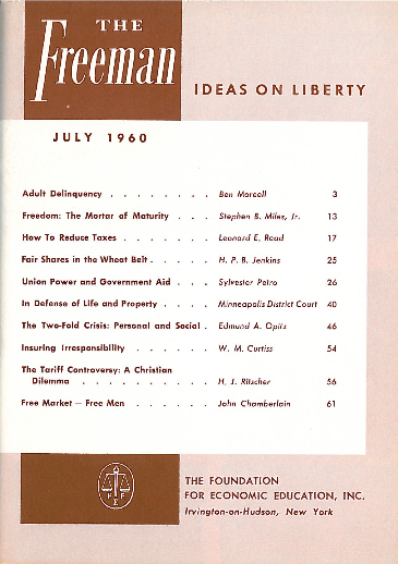 This issue of the Freeman explores adult delinquency, how to reduce taxes, union power and government aid, and more.