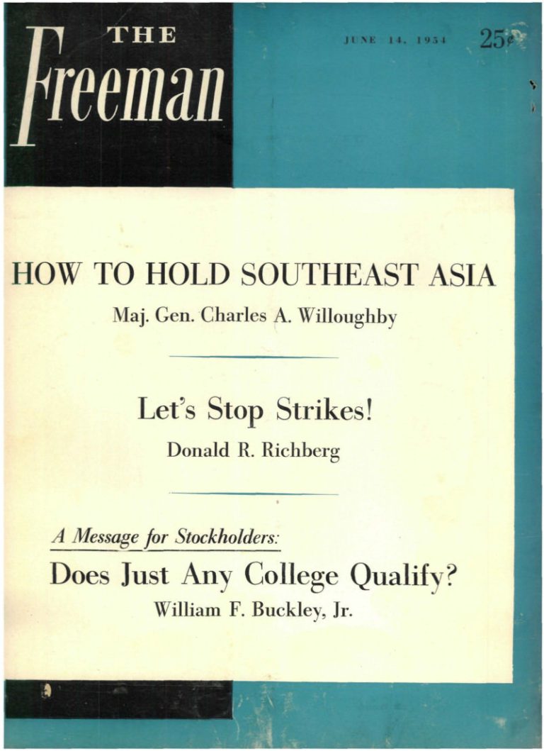 This issue of the Freeman explores the failure of British socialism, communism in American labor, decreasing American tariffs, and more.