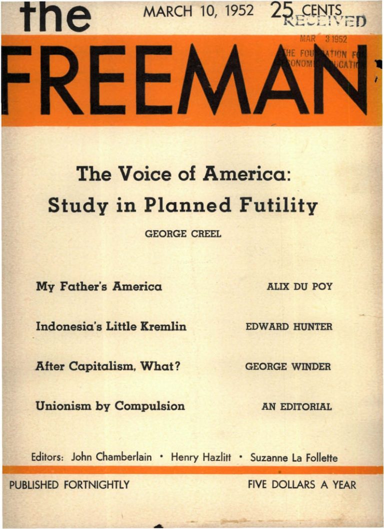This issue of the Freeman explores compulsory union membership, America before the New Deal, Indonesian communism, and more.