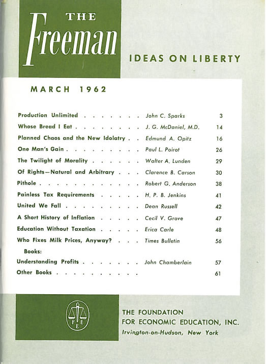 This issue of the Freeman explores planned chaos, natural and arbitrary rights, a short history of inflation, and more.