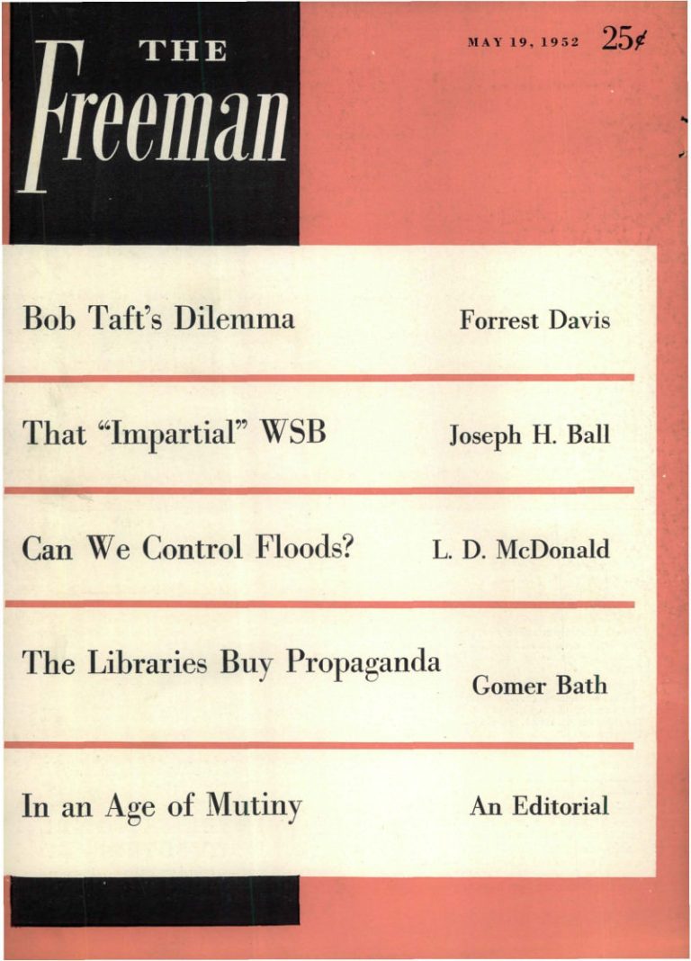 This issue of the Freeman explores Robert Taft’s foreign policy promises, the Wage Stabilization Board’s bias, libraries circulating propaganda, and more.