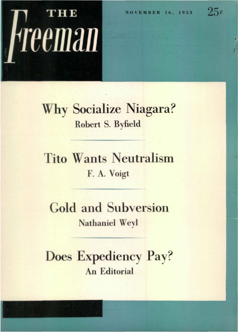 This issue of the Freeman explores socialism and Niagra Falls, political relations with Russia, gold from Soviet death camps, and more.