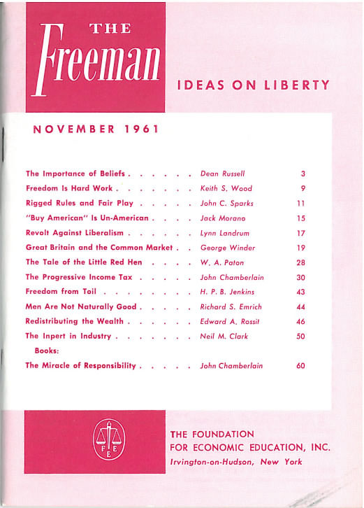 This issue of the Freeman explores the importance of beliefs, the hard work of freedom, the revolt against liberalism, and more.