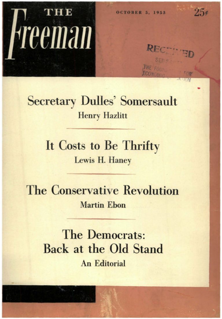 This issue of the Freeman explores Secretary Dulles’ treaty-making power, a conservative revolution, an analysis of Greece’s politics, and more.