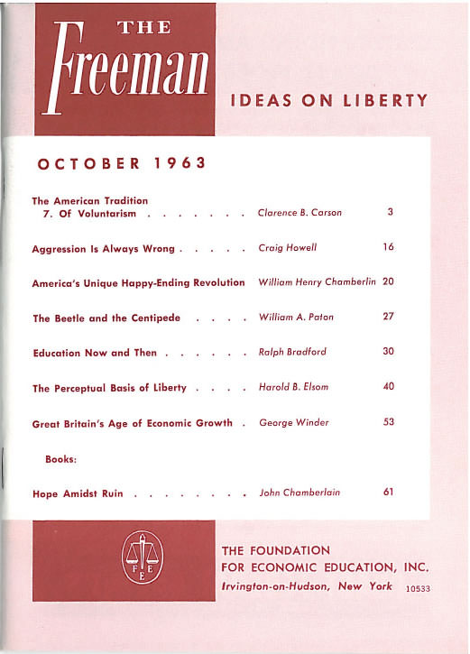 This issue of the Freeman explores voluntarism, why aggression is always wrong, the perceptual basis of liberty, and more.