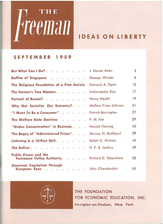 This issue of the Freeman explores the religious foundation of a free society, the welfare state, Europe’s view of American capitalism, and more.
