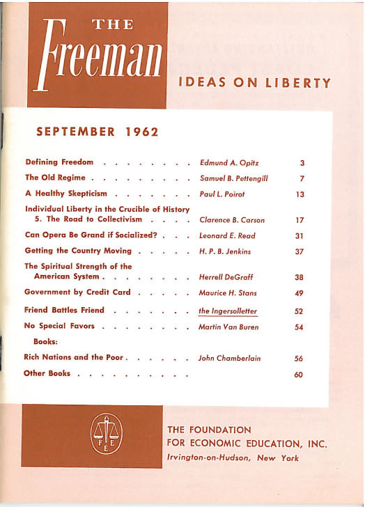 This issue of the Freeman explores definitions of freedom, healthy skepticism, the spiritual strength of America, and more.