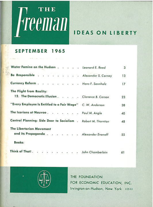 This issue of the Freeman explores responsibility, currency reform, central planning, and more.